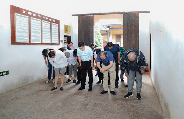 随后,党员一行来到了王震将军故居参观。“为国开基,将军百战彪青史;毕生革命,桑梓千秋仰大名。”这一幅挂在故居门前的对联是对王震将军波澜壮阔的一生的最好诠释。在讲解员的带领下,党员一行详细了解了王震将军的生平事迹,并在王震将军画像前敬献花篮,行鞠躬礼,深情表达对革命先烈崇高的敬意。