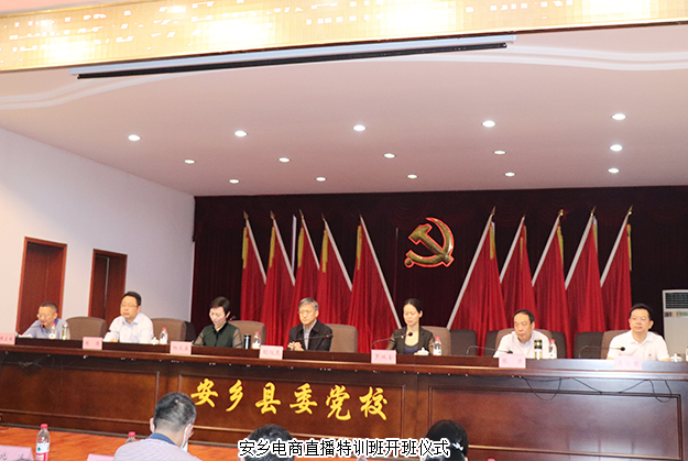 16日上午,省政协调研组一行参加安乡县党校内举办安乡电商直播特训班开班仪式。仪式由安乡县人民政府副县长周宏林主持,安乡县人民政府县长陈德致辞,安乡县黄山头镇党委书记周成发言,湖南省政协副秘书长罗双全、常德市政协副主席张力分别在仪式上讲话,罗双全表示,电商直播特训班的举办,能够加快培育安乡优秀的网红主播,壮大电子商务新兴业态。