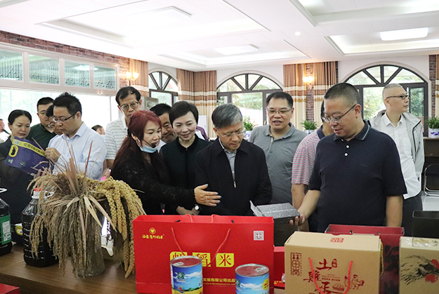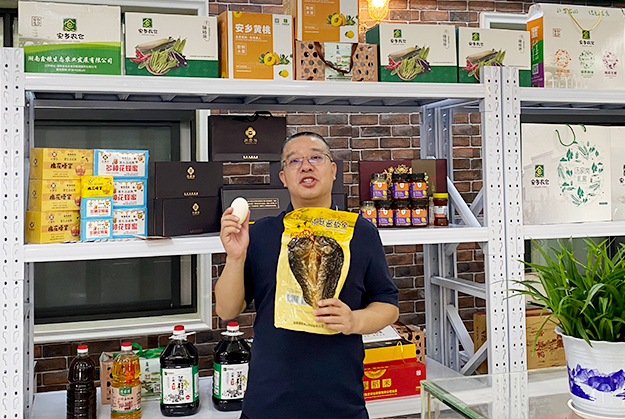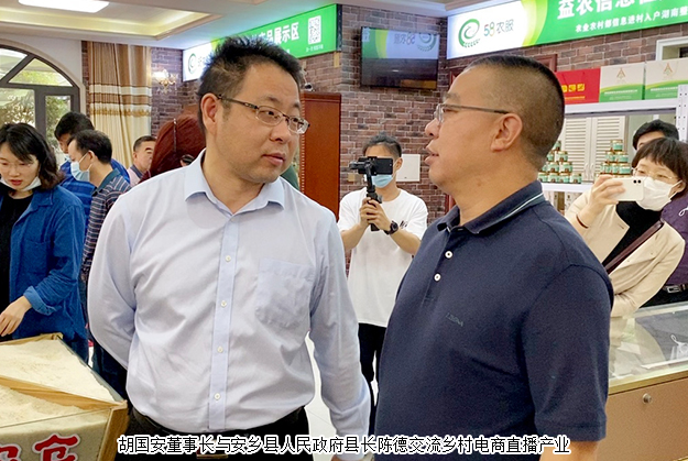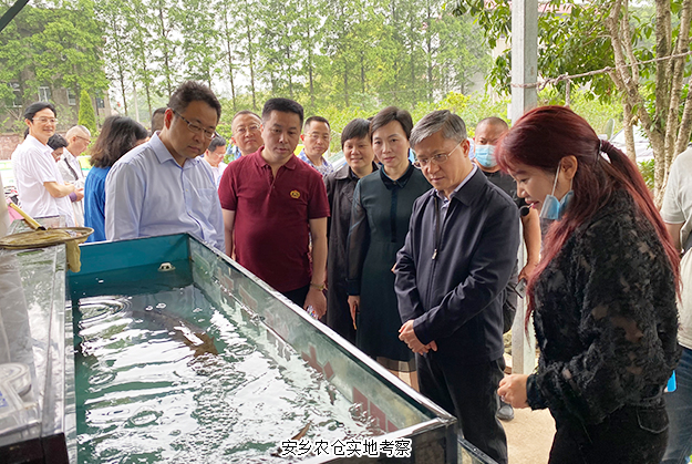 开班仪式后,胡国安董事长陪同调研组一行前往安乡农仓,考察安乡农产品和电商直播情况。据了解,“安乡农仓”是隶属于安乡县的区域公用品牌,由以珊珀湖鱼为代表的鲜活类系列产品、以黄山头鸭为代表的卤腊休闲类系列产品、以汤家岗米为代表的粮油类系列产品组成,这也标志着作为农业大县的安乡正在转型发展、正在实行品牌发展、正在高质量发展,正在实现“农业大县向农业强县”的华丽蝶变。