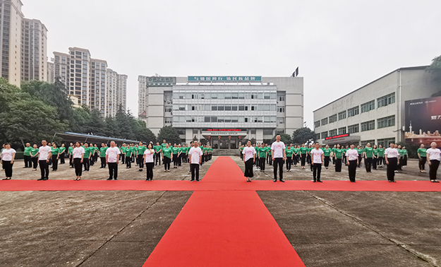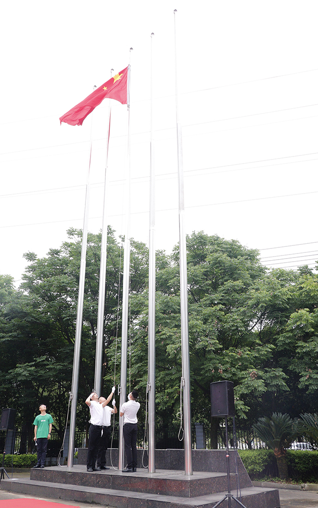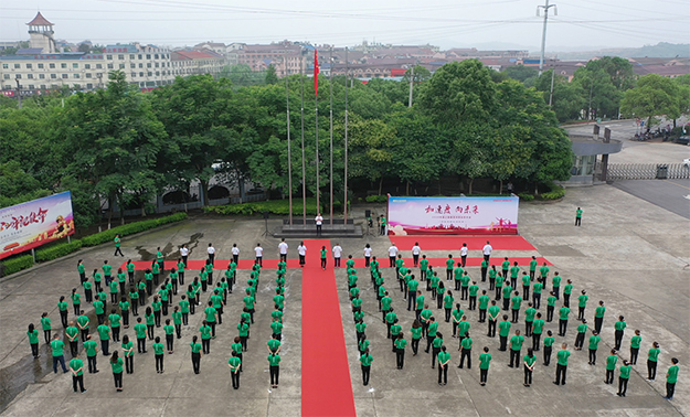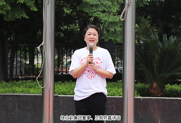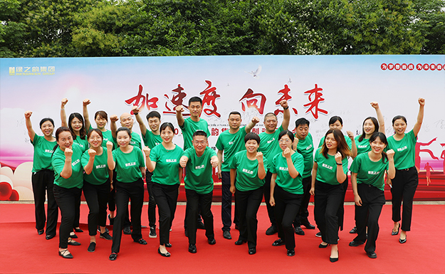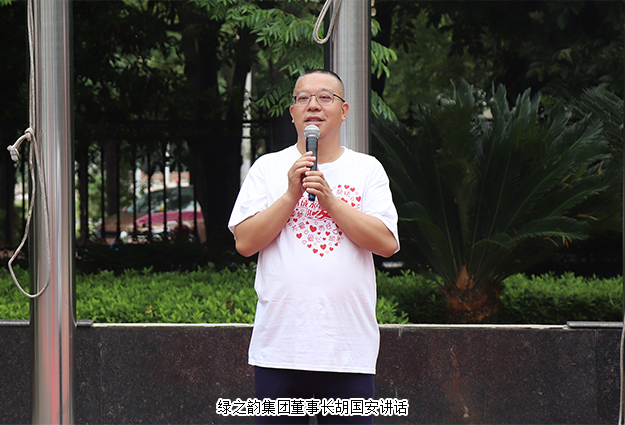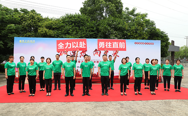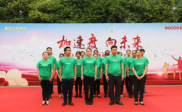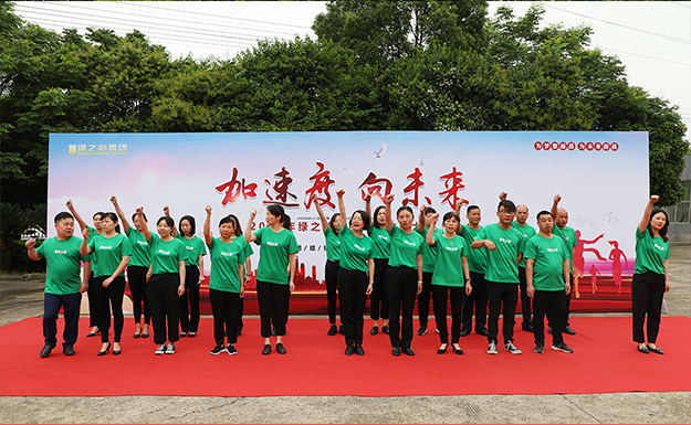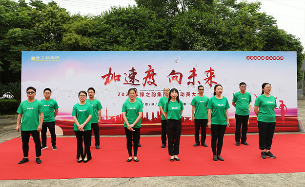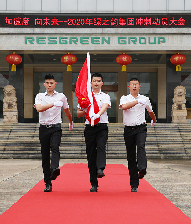一曲激昂澎湃的《绿韵飞扬》拉开了动员大会序幕。在集团公司前坪,全体绿之韵人统一着装、整齐列队迎接升旗仪式暨动员大会。伴随着庄严雄壮的国歌声,鲜艳的五星红旗冉冉升起,绿之韵家人向国旗行注目礼,内心激荡着对伟大祖国的热爱和崇敬。