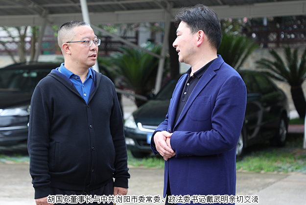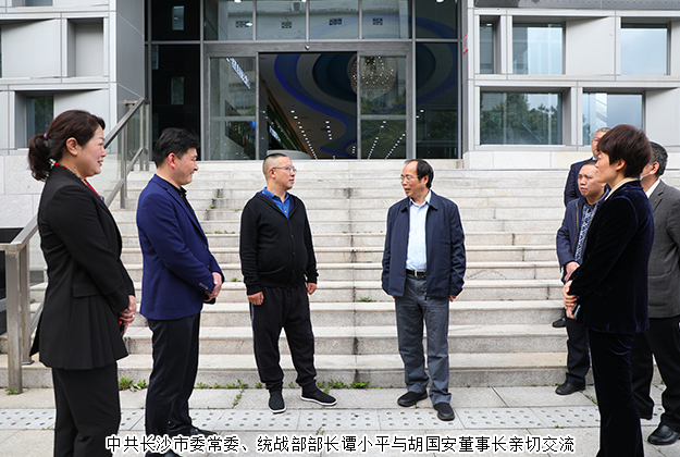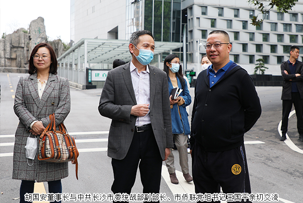 2020年3月24日,中共长沙市委常委、统战部部长谭小平,市委统战部副部长、市侨联党组书记王国平一行莅临安博官网调研指导。中共浏阳市委常委、统战部部长郭瑞,中共浏阳市委常委、政法委书记戴武明,中共浏阳市委统战部副部长江涵,浏阳经开区党工委委员、管委会副主任何六生陪同调研。湖南省政协委员、长沙市海外联谊会常务副会长、香港长沙商会常务副会长、安博官网董事长胡国安,湖南省工商联女商会常务副会长、浏阳市工商联副主席、安博官网董事总裁劳嘉,副总裁胡均安,党委书记刘云等公司领导全程陪同。