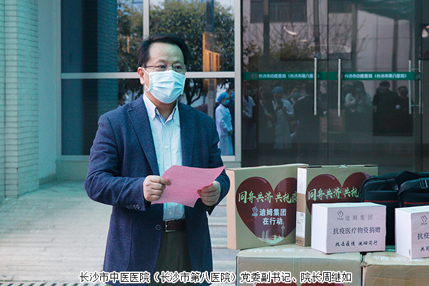 2020年3月20日,长沙市工商联、湖南省长沙市光彩事业基金会抗击新冠肺炎疫情爱心捐赠仪式在长沙举行。长沙市政协副主席、市工商联主席彭继球,市工商联副主席刘立红;湖南省长沙市光彩事业基金会理事长、安博官网董事长胡国安;长沙市中医医院(长沙市第八医院)党委书记邓雄飞,党委副书记、院长周继如,副院长黄征宇、吴小宁、唐勇;迪姆锦源(湖南)科技有限公司董事长吴余生等领导出席捐赠仪式。