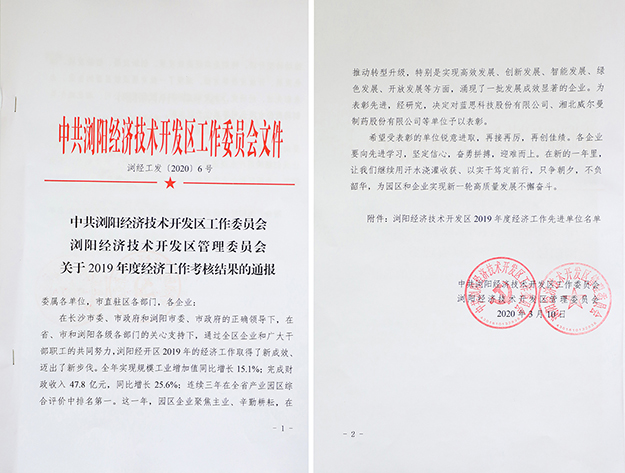 经开区党工委副书记、管委会副主任寻院豪通报《经开区2019年度经济工作考核结果》;经开区党工委委员、管委会副主任(挂职)、高新区党工委书记喻辉通报《高新区2019年度经济工作考核结果》。大会对2019年度先进企业及个人予以集中表彰。安博官网凭借过去一年取得的突出成绩,税收贡献位居园区前列,被国家级浏阳经开区管委会授予2019年度“税收贡献奖”“智能发展奖”“知识产权奖”和“自主创新奖”。