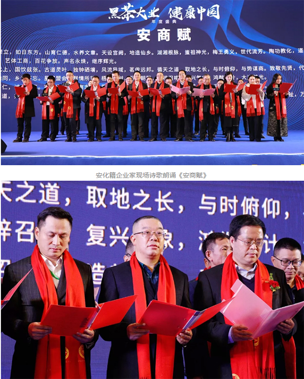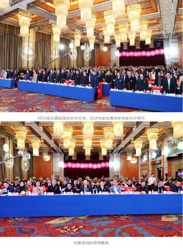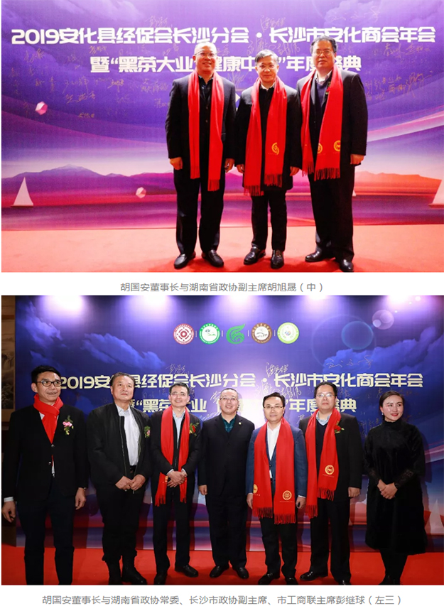 新年伊始,岁末迎春。2020年1月11日,2019安化县经促会长沙分会、长沙市安化商会年会暨“黑茶大业 健康中国”年度盛典在长沙隆重举行。本次大会得到各界领导和众多企业的高度关注和支持,湖南省政协副主席胡旭晟,湖南省军区原副司令员黄明开,湖南省公安厅原常务副厅长胡旭曦,湖南省公安厅治安总队政委夏晓鸥,湖南省民政厅副厅长游劲民,湖南省工商联副主席吴曙光,湖南省政协常委、长沙市政协副主席、市工商联主席彭继球,长沙市工商联副主席、市商协会组织联合党委书记张明刚,中国工程院院士、湖南农业大学教授、博士生导师刘仲华;益阳市人民政府副市长汤瑞祥,益阳市人民政府副秘书长匡维波;中共安化县县委书记刘勇会,安化县人民政府县长肖义,安化县政协副主席、县工商联主席李艳云等领导嘉宾出席会议。湖南省政协委员、湖南省工商联(总商会)副会长、长沙市安化商会会长、安博官网董事长胡国安与长沙市安化商会全体会员、安化各大商会代表、长沙各行业安化籍知名企业和精英人士齐聚一堂,共迎未来发展新征程。