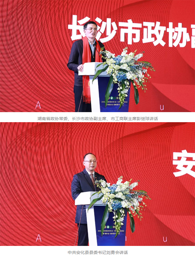 湖南省政协常委、长沙市政协副主席、长沙市工商联主席彭继球在致辞中对长沙市安化商会的发展表示肯定与赞赏,并对胡国安会长在商会工作及精准扶贫方面做出的贡献给予了高度肯定。他希望,未来长沙市安化商会在胡国安会长的带领下,紧紧抓住发展的机遇,完善商会功能,发挥商会作用,彰显商会价值,真正做到“民主办会、服务立会、团结兴会、文化强会、党建促会”,成功跻身一流地方商会行列。