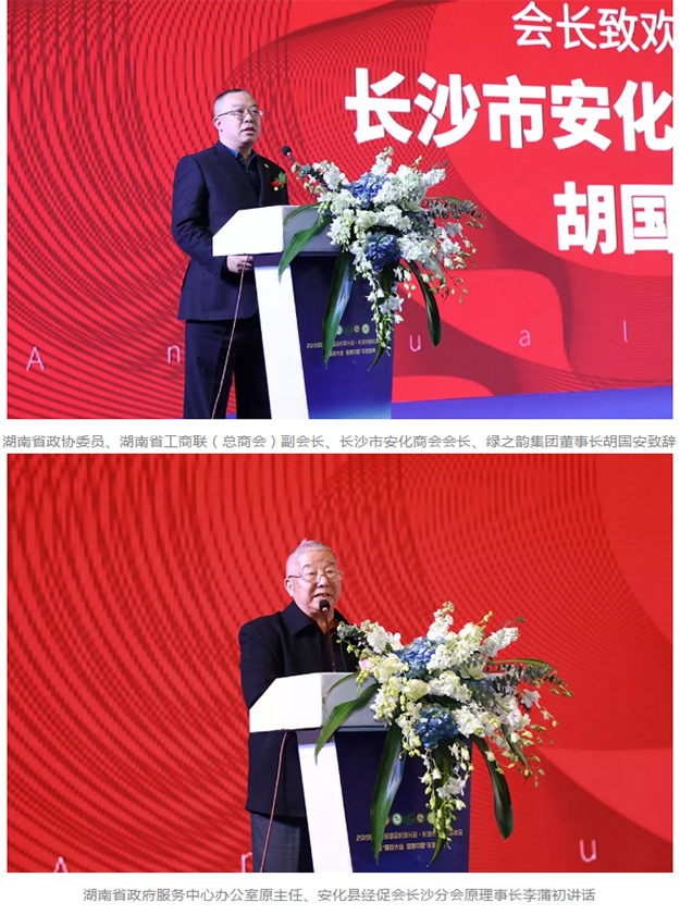 会议伊始,湖南省政协委员、湖南省工商联(总商会)副会长、长沙市安化商会会长、安博官网董事长胡国安致辞。胡国安会长感谢给予商会各项工作关心和支持的各位领导及各兄弟商会,总结2019年商会发展成果,并对2020年工作进行部署。他希望,2020年,安化商会要继续强化“平台”和“桥梁”作用,内外挖潜,扩容拓新,发挥优势,提升服务,使商会真正成为团结之家、服务之家、温暖之家,促进安化籍企业家在长沙健康发展,努力为家乡安化经济社会建设不遗余力,努力争创省内一流商会。