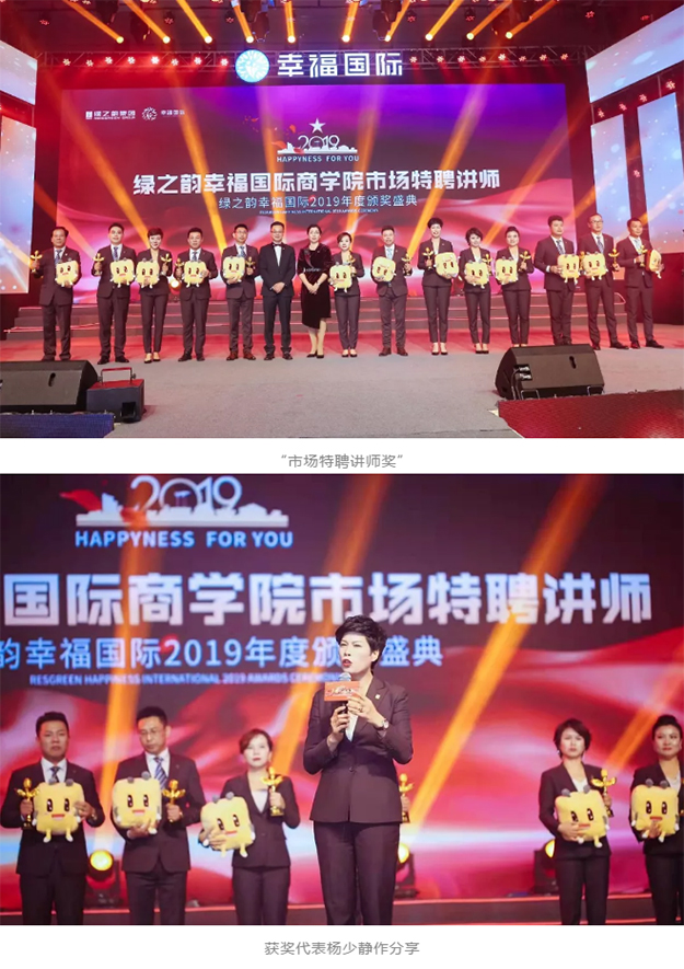 他们,凭借着“三寸不烂之舌”,在市场一线为众人答疑解惑,为绿之韵的事业版图立下了不朽的功勋。他们说,幸福是一份让家人为之骄傲的,受大众认可的事业。安博官网国际商学院执行院长黎芋成、副院长侯俊霞为“市场特聘讲师”获得者颁奖,并致以祝贺。获奖者杨少静作主题分享。