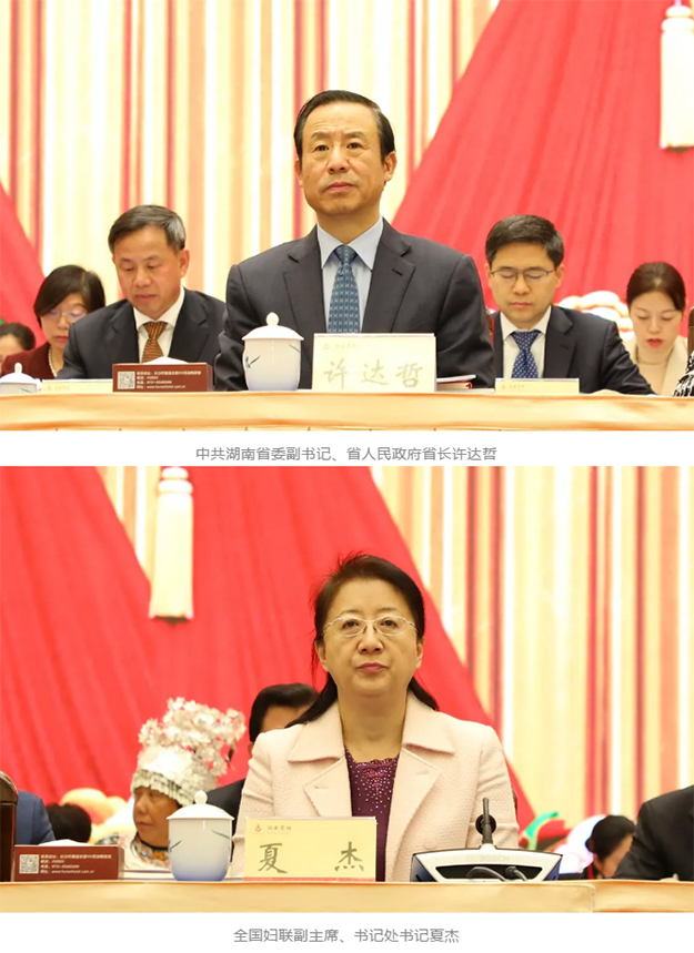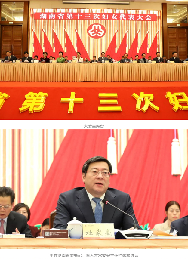 开幕式上,中共湖南省委书记、省人大常委会主任杜家毫代表省委、省人大常委会、省政府、省政协向大会的召开表示祝贺。他强调,全省各级妇联要牢牢坚持党的领导这一根本保证,牢牢把握桥梁纽带的定位,牢牢抓住联系和服务妇女这一工作生命线,切实增强政治性、先进性、群众性,更加关注、关心、关爱妇女儿童,最广泛地凝聚妇女力量。各级党委要加强和改进对妇联工作的领导,支持和推动妇联改革向纵深发展、在基层落地,重视妇联干部队伍建设,关心培养妇女干部,努力为广大妇女全面发展营造良好环境。