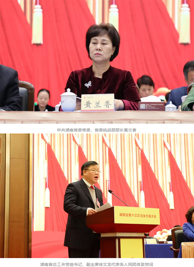 全国妇联副主席、书记处书记夏杰代表全国妇联高度评价了湖南妇女工作。她指出,要深入学习贯彻习近平新时代中国特色社会主义思想,团结引领广大妇女坚定不移听党话、跟党走;要紧紧围绕加快建设富饶美丽幸福新湖南,组织动员广大妇女发挥半边天力量;要引导广大妇女弘扬社会主义家庭文明新风尚,充分发挥家庭家教家风在基层社会治理中的重要作用;要依法维护妇女合法权益,推动完善促进男女平等、妇女全面发展的制度机制;坚定不移将妇联改革进行到底,不断增强政治性、先进性、群众性。会上,湖南省妇联十二届主席姜欣作工作报告,湖南省总工会党组书记、副主席徐文龙代表各人民团体致贺词。