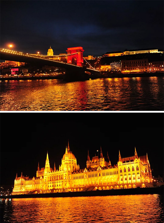 夜游蓝色多瑙河,两岸风光如同画卷徐徐展开,在绿之韵人一声声惊叹中,便可感知它的浪漫与唯美。几座大桥左手牵着布达,右手挽着佩斯,让这两座中古小城再无罅隙,一同沉溺在,多瑙河多情的怀抱里。而多瑙河三镇(山丹丹、维谢格拉德镇、埃斯泰尔戈姆镇)的游览,让绿之韵人遇见了“一夜两城”的奇观——第一天阳光明媚下的多瑙河与第二天大雪纷飞的多瑙河,这是运气、是福气,也是奇迹!
