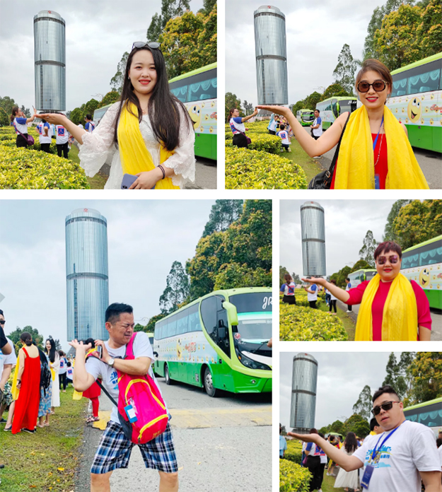 沙巴基金大厦是世上少数以一支主干轴体,由96支钢条呈辐射状支撑的圆体形建筑,拥有72个边的大型、现代化、全由玻璃覆盖,楼高 31 层楼。大厦顶层是有名的旋转餐厅,经常有很多游客慕名而来。绿之韵家人们在此拍照、合影,度过了一个愉快的下午。