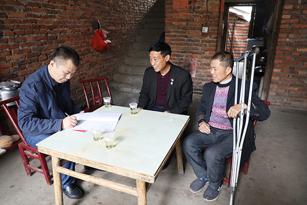 车刚到达巷子附近,拄着双拐的刘良仁已经在门口等着了。刘良仁因病双腿骨头坏死,不能正常行走、久坐和久站,他的妻子也有严重的腰椎盘突出,夫妻两人都没有劳动能力。家中三个女儿大的14岁,小的10岁,都还在读书。因病因学致贫,又没有劳动力,成为了家里久久不能脱贫的主要原因。刘良仁家中还是很早年建的红砖房,连家具都没有几样,厨房里现在还用蜂窝煤灶台,他笑着跟许达仲副书记说尽量降低生活成本,娃要读书,他和妻子身体还不好。此次浏阳市公安局经侦大队大队长蒋骞、副队长李伟与安博官网党委副书记许达仲等一行为刘良仁送来了爱心慰问金和健康生活产品。