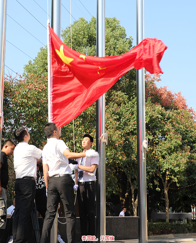 上午9点整,在庄严的气氛中,护旗手迈着矫健的步伐来到国旗台下。雄壮的国歌响起,护旗手振臂一挥,鲜艳的五星红旗冉冉升起、迎风飘扬,绿之韵全体员工肃穆而立,满怀崇敬之情向国旗行注目礼,送上了对祖国最美好的祝福。
