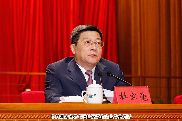 杜家毫说,放眼今日之世界,国际形势风云变幻,面临百年未有之大变局;纵观今日之中国,风雨洗礼中自强不息,正处在走向民族复兴的关键节点;审视今日之湖南,机遇和挑战并存,正处在即将全面建成小康社会开启现代化建设新征程的重要阶段。他提出了“六个更加”的要求:我们要更加自觉地高举新时代中国特色社会主义思想的伟大旗帜。我们要更加努力地加快推进治理体系和治理能力现代化建设。我们要更加坚定地推动经济高质量发展。我们要更加深入地推进改革开放。我们要更加努力地提升人民群众的获得感幸福感安全感。我们要更加坚定地推进全面从严治党。进入新时代、踏上新征程,每一个三湘儿女都是参与者、亲历者、建设者。回望来路,我们倍感自豪、倍感荣耀、倍感振奋;展望前路,我们信心满怀、重整行装、阔步前行。我们要高举中国特色社会主义伟大旗帜,坚持以新时代中国特色社会主义思想为指导,一棒接着一棒跑,一代接着一代干,加快建设富饶美丽幸福新湖南,共同为实现中华民族伟大复兴的中国梦而努力奋斗。