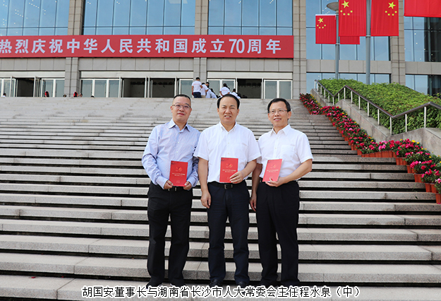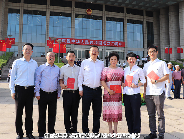 胡国安董事长表示,“优秀建设者”既是党和国家给予的至高荣誉,也是时代和人民赋予的重要使命。今天作为非公企业家代表参加湖南省庆祝中华人民共和国成立70周年大会感到无上荣耀,在今后工作中也一定不忘初心,牢记使命,砥砺前行,勇于担当作为,在建设中国特色社会主义伟大事业的历史进程中再立新功!祝福伟大祖国更加繁荣昌盛!