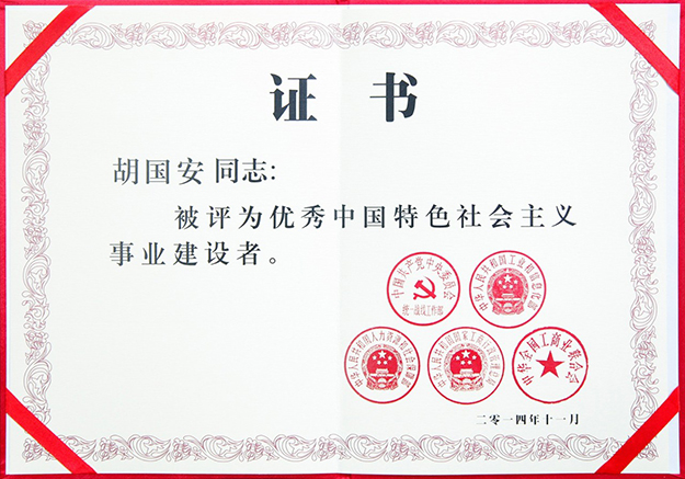 “第四届全国优秀中国特色社会主义事业建设者”胡国安董事长
