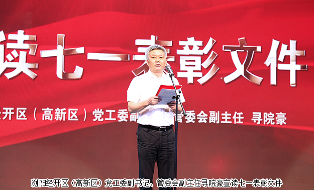 会上,浏阳经开区(高新区)党工委副书记、管委会主任谈文昌讲话。他首先代表浏阳经开区(高新区)党工委向过去一年中奋战在工作一线的数千名共产党员和离退休党员致以崇高的敬意和节日的问候。他表示,值此中国共产党99周年到来之际,我们在这里隆重聚会,共同庆祝党的生日,表彰过去一年在园区经济社会发展进程中涌现的党建示范点、先进基层党组织、优秀共产党员、支持党建优秀企业家和优秀党务工作者。他希望,受表彰的优秀企业和个人在今后的工作中再接再厉、再创佳绩,进一步发挥基层党组织的战斗堡垒作用和党员的先锋模范作用。广大党员要以先进为榜样,不忘初心、牢记使命,奋力夺取疫情防控和经济社会发展“双胜利”,为园区高质量发展作出新的更大贡献。