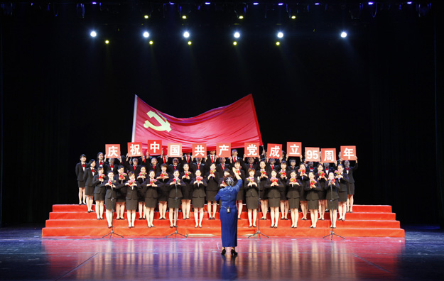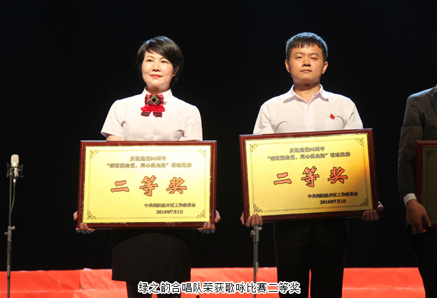 大会最令人热血沸腾的环节是庆祝建党95周年歌咏比赛的举办。《歌唱祖国》、《唱支山歌给党听》、《党啊,亲爱的妈妈》等一支支弘扬伟大祖国繁荣昌盛的主旋律在金阳唱响。绿之韵合唱队在集团党总支带领下以饱满的热情和嘹亮的歌声表演了《四渡赤水出奇兵》,积极进取、奋发向上的精神风貌感染了现场每一个人,并最终荣获歌咏比赛二等奖。