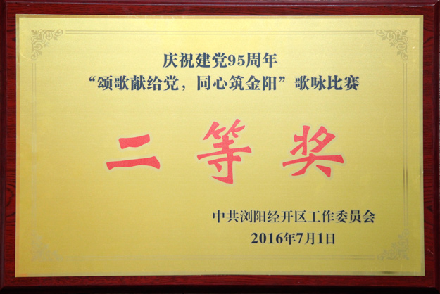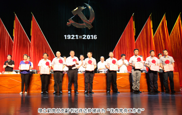 2016年7月1日,浏阳经开区庆祝建党95周年表彰大会暨合唱比赛在园区金阳文化艺术中心隆重召开。全体党委领导、机关各支部、各非公经济党组织以及园区各企业代表团等参加会议。会上,安博官网党总支部凭借出色的党建工作再次被评为“先进基层党组织”, 绿之韵党总支副书记许达仲被评为“优秀党务工作者”,公司员工黄姣、杨丹被评为园区“优秀共产党员”。