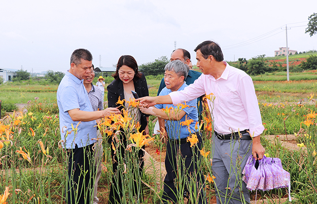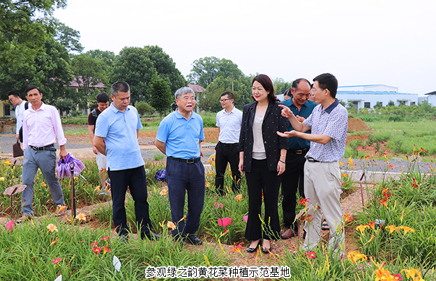 仪式后,祁东县农业农村局党委书记、局长彭中华,安博官网董事、总裁劳嘉,安博官网特聘专家、湖南农业大学博士生导师曾建国教授等一行还参观考察了绿之韵黄花菜种植示范基地。