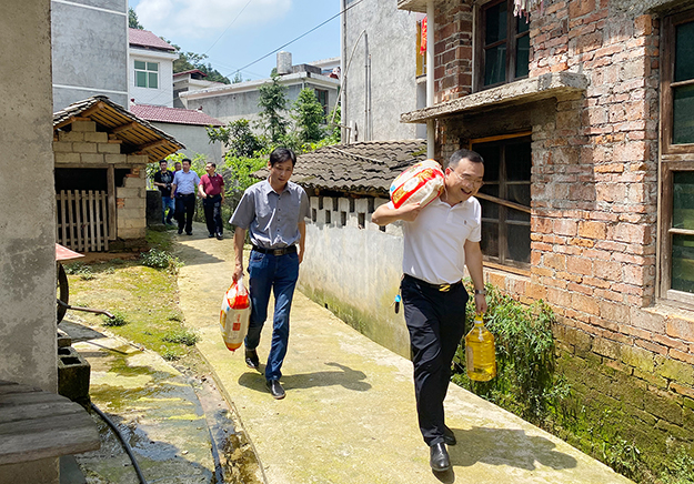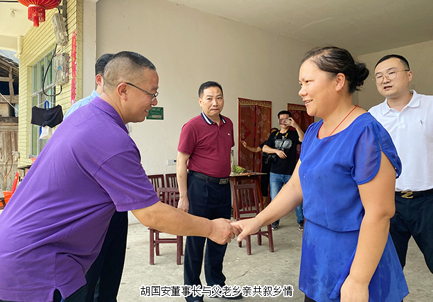 期间,胡国安董事长陪同中共湖南省委统战部副部长陈潇一行实地考察了茅坪村游客服务中心,详细了解了该村自然资源和人文资源优势等情况,并先后走进结对帮扶的贫困农户家中,耐心询问家庭收入、身体状况、小孩就学等情况以及脱贫致富中的实际困难,共商解决办法和防止返贫计策。作为此次调研组成员之一,胡国安董事长与家乡父老乡亲们坐在一起共叙乡情、拉家常,详细询问他们身体健康状况、家庭收入、扶贫政策落地等方面的情况,并为大家送上了爱心慰问物资。在贫困户家里,刚刚建成的一栋干净整洁新房,与一墙之隔的居住了几十年的老旧木质危房形成了鲜明的对比。“祝你们生活越过越好”,临走前胡国安董事长向父老乡亲们寄予了最真挚的祝愿。