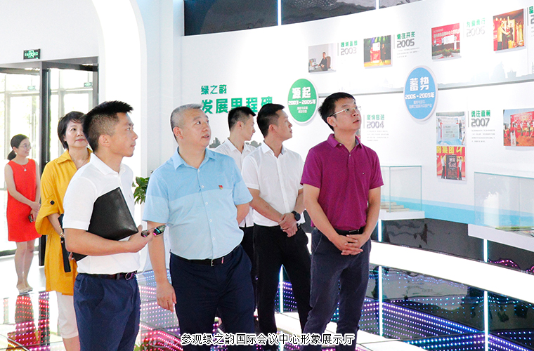 调研组一行先后参观了绿之韵党建文化教育基地、绿之韵国际会议中心形象展示厅。展厅以绿之韵“水的精神”为贯穿构想,运用现代化、科技化、智能化的创新技术手段,全方位、多角度生动呈现了绿之韵十七年的发展历程、企业文化、所获表彰、党建公益、创业就业、产品科研、金融布局等企业发展全景。胡均安副总裁、刘云书记围绕非公党建、基层团建、青年创业、产业布局、社会责任和愿景规划等方面的工作情况向调研组一行作了详细汇报。