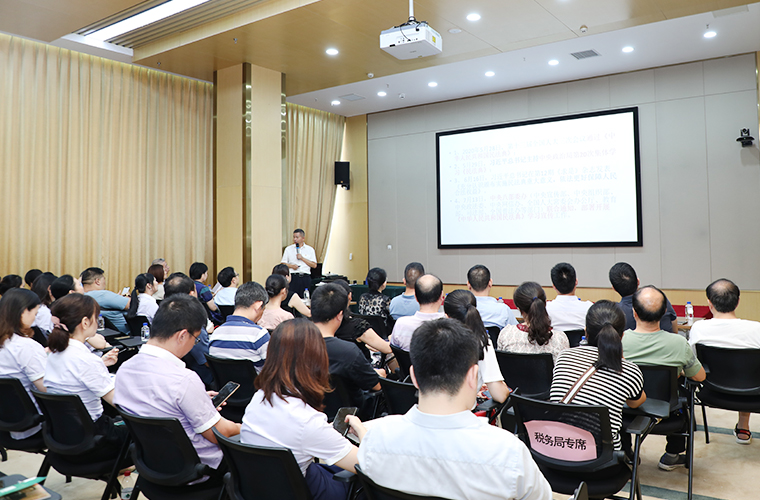 为响应中央八部委办学习宣传《民法典》要求,进一步培育全体员工法治思维,真正把《民法典》宣传融入到企业法治实践全过程,营造出学法守法用法的良好氛围,2020年8月25日,安博官网党委联合浏阳市税务局第二税务所党支部共同举办的普及《民法典》知识讲座暨主题党日活动在集团公司国际会议中心会议室举行。本次活动特别邀请到了湖南省《民法典》普法宣讲团成员,长沙市雨花区检察院党组书记、检察长马贤兴为全体员工带来了一堂生动精彩的法治盛宴。浏阳市税务局第二税务所所长雷卫东、浏阳市税务局第二税务所党支部书记潘晓明 、浏阳经开区企业党委党建科科长胡晓江;安博官网董事、总裁劳嘉,副总裁刘淑娟、胡均安,副总经理梅其慧,党委书记刘云等领导参加活动。