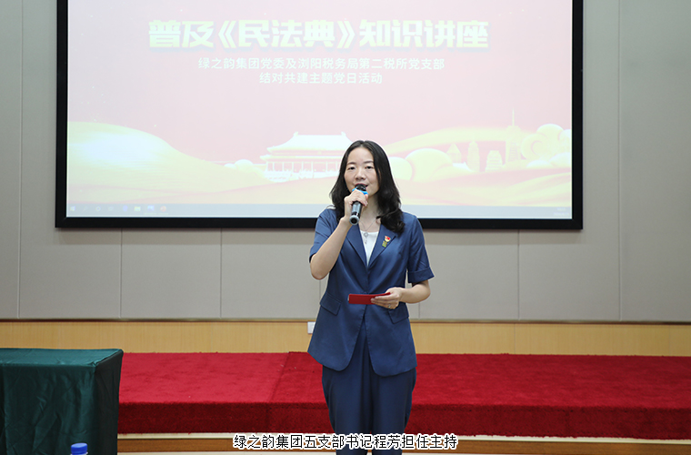 活动伊始,安博官网副总裁胡均安致欢迎词。他对湖南省民法典普法宣讲团成员马贤兴检察长、浏阳市税务局第二税务所党支部领导的莅临表示了热烈的欢迎。他希望,集团员工能珍惜这次《民法典》知识讲座的学习机会,将此次学习所学所悟运用到日常的工作与生活中去,逐渐养成自觉学法知法守法的意识、遇事找法的习惯和解决问题靠法的能力。