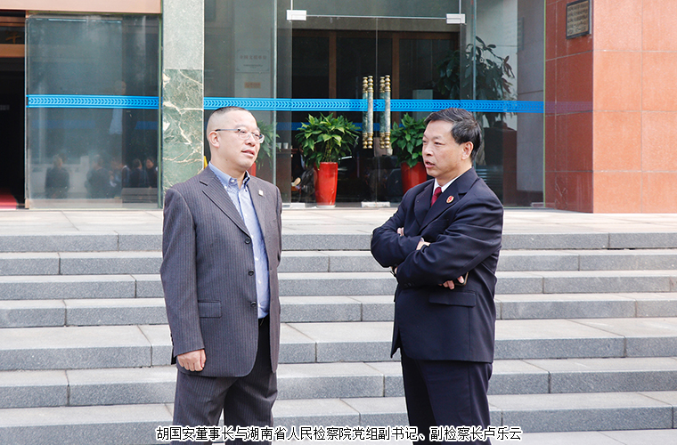 为深入贯彻习近平总书记重要讲话精神,扎实做好“六稳”工作,全面落实“六保”任务,2020年10月28日,湖南省人民检察院举行“服务六稳六保 护航民企发展”检察开放日活动,湖南省人民检察院党组书记、检察长叶晓颖,党组副书记、副检察长卢乐云,党组成员、副检察长朱必达;湖南省工商联副主席李曦,法律服务处副处长陈夕林等相关领导出席活动。湖南省政协委员、省工商联(总商会)副会长、安博官网董事长胡国安等十位省人大代表、政协委员,以及民营企业家代表,法学专家、律师、大学生代表应邀参加活动。