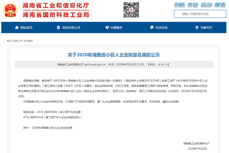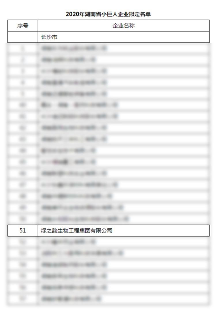 近日,湖南省工业和信息化厅发布公示,根据省经信委、省财政厅《关于印发的通知》和省工信厅《关于做好2020年小巨人企业培育工作的通知》要求,经企业网络申报,市州工信局、省财政直管县工信部门审核推荐,专家评审,认定绿之韵生物工程集团有限公司等企业为2020年湖南省小巨人企业。