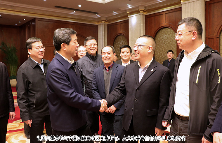 为进一步促进湘宁两地经贸交流合作,推动双方企业精准对接,实现优势互补,2020年11月16-19日,湖南省政协副主席、省工商联主席张健,长沙市政协副主席、市工商联主席彭继球携湖南民营企业代表团赴宁夏考察调研。宁夏回族自治区党委书记、人大常委会主任陈润儿亲切会见了代表团一行。宁夏回族自治区党委常委、秘书长赵永清,自治区党委常委、统战部部长白尚成,自治区政协副主席王紫云,自治区商务厅厅长徐晓平,自治区党委统战部副部长、工商联党组书记魏莉,自治区工商联副主席康俊杰;银川市委常委,市人民政府副市长李鸿儒,银川市政府副市长韩江龙;吴忠市政协主席孙瑛,市人民政府副市长戴培吉等领导陪同调研。湖南省工商联副主席、步步高集团总裁陈志强,湖南省工商联(总商会)副会长、安博官网董事长胡国安等企业家、商会会长参加调研。