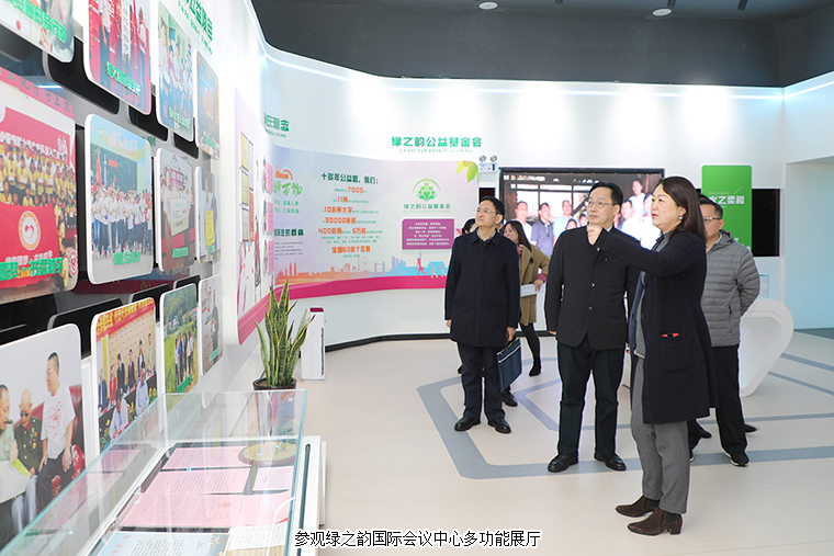 在绿之韵国际会议中心多功能形象展示厅,劳嘉总裁就企业基本情况、生产经营、市场布局、产品研发、非公党建和公益慈善等方面的工作情况向调研组一行作了介绍。绿之韵坚持“以产品为导向”的发展理念、“水的精神和家文化”的企业特质以及产业富民、回馈社会的良好企业形象得到了调研组一行的肯定。