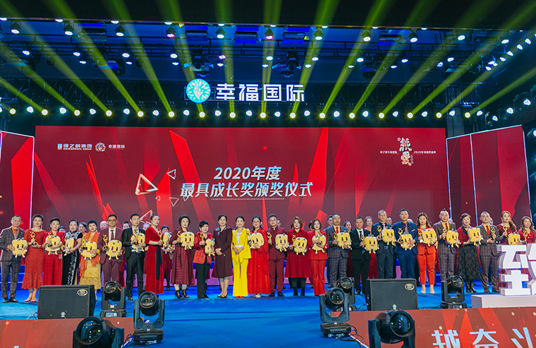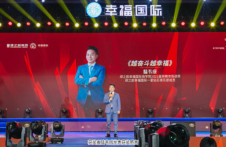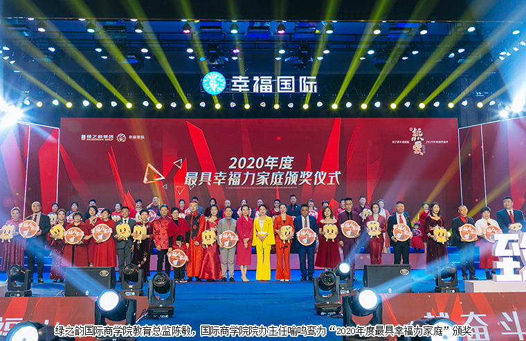 在现场千余名绿之韵幸福国际家人们的见证下,大会举行了盛大的颁奖仪式。绿之韵国际商学院执行院长黎芋成,国际商学院副院长侯俊霞,国际商学院教育总监陈敏,国际商学院院办主任喻鸣鸾为“2020年度最具幸福力家庭”“2020年度最具成长奖”“2021届特聘市场讲师”颁奖。获奖者李洪波、李金岳伉俪、石雷、尹艳红发表获奖感言。