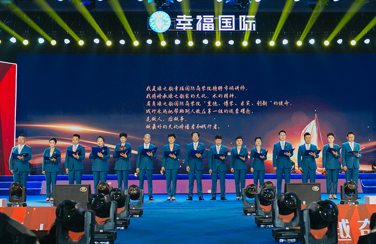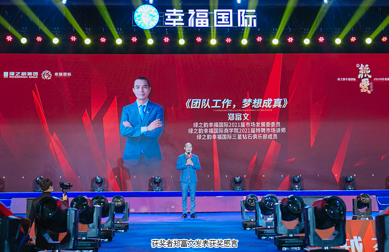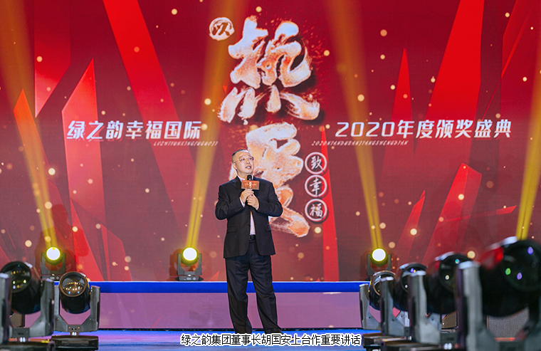 大会最后,在全场最为热烈的掌声中,安博官网董事长胡国安上台讲话。他首先向大会现场以及通过在线互动视频观看本次大会盛况的绿之韵家人致以热烈的欢迎和诚挚的问候,并向每一位获奖者表示热烈的祝贺。他表示,在绿之韵幸福国际,只要你们足够努力,只要你们跟随公司一起奋斗,每一位绿之韵家人都能够拥有梦想成真的机会,都能收获成功和幸福。我相信,在集团董事、总裁劳嘉带领市场服务团队的大力支持下,在执行总经理夏运良带领的市场管理团队的努力开拓下,幸福国际一定能够成为绿之韵的王牌部队。不久前,我在看到北大陈春花教授的一篇文章,文章中讲道2021年的关键词是信心。信心比黄金更重要。绿之韵幸福国际的信心便来自于集团董事、总裁劳嘉带领市场服务团队和执行总经理夏运良带领的市场管理团队。未来三年,在集团公司的全力支持下,在现场每一位和通过视频收听的绿之韵家人的支持下,我们一定能实现三年百亿的目标。我真心的祝愿每一位绿之韵幸福国际的家人在市场发展的路上,能够传递爱,传递幸福,传播绿之韵的企业文化,最终实现你们不同阶段的人生梦想。作为安博官网的掌门人,我对绿之韵幸福国际这支团队充满着信心,我永远是你们最坚实的后盾!