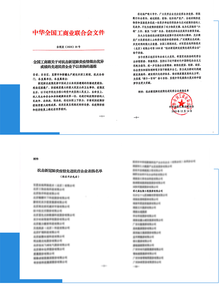 近日,全国工商联发布《关于对抗击新冠肺炎疫情做出优异成绩的先进民营企业予以表扬的通报》,对1000家“抗击新冠肺炎疫情先进民营企业”给予表扬。安博官网充分发挥自身优势,积极履行社会责任,通过捐款、捐物、组织采购防疫物资支援抗疫一线等多种途径积极参与应对疫情防控的人民战争而荣获表彰。