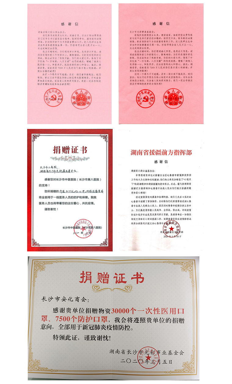 抗疫期间,绿之韵公益基金会在创始人胡国安、理事长劳嘉女士的缜密部署下,与安博官网公司党委、工会、全国分公司、各下属机构上下联动,通过多种方式积极援助湖北湖南抗击疫情。同时,公益基金会第一时间发出爱心募捐倡议,全体员工、全国各地经销商纷纷慷慨解囊,奉献爱心,募集的所有款物,均由湖南省委统战部、长沙市委统战部、益阳市委统战部、湖南省慈善总会、上海市慈善总会统一调配后,迅速发往省内外医疗卫生机构、社会福利机构等医疗物资急需的地方。