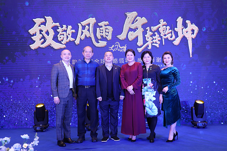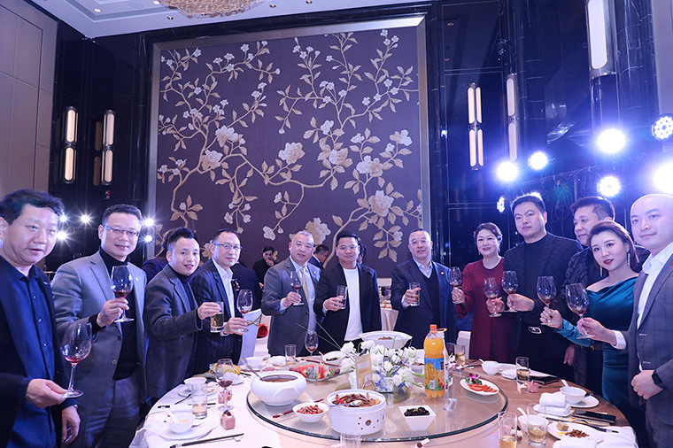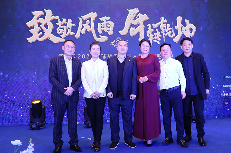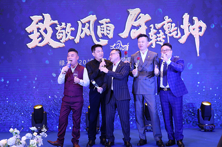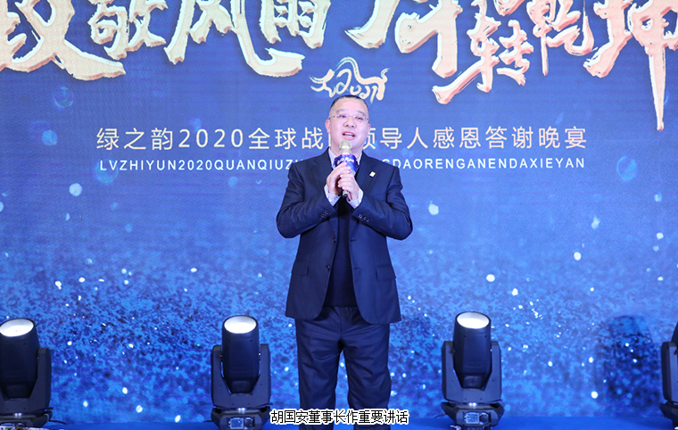 晚宴最后,胡国安董事长作重要讲话。他表示,感谢所有老朋友、新伙伴在严格疫情防控的前提下,前来参加此次特殊时期的晚宴,感谢大家一直以来对绿之韵平台的信任、坚守和支持。展望2021,绿之韵将继续坚持“三个思维”:一是底线思维。坚守正道,做正确的事;坚守产品,做规范的事;坚守创新,做领先的事;二是抱团思维。绿之韵是我们共有的品牌,我们应该具备主人翁意识和抱团取暖的思维,聚沙成塔,一起来呵护品牌、发展品牌、壮大品牌。三是命运共同体思维。企业文化融合的使命共同体,合作共赢的利益共同体,回馈社会的责任共同体。他殷切希望,每一位绿之韵人都能成为一名旅行家,永远奔跑在梦想的路上;成为一名慈善家,心怀感恩,致力于公益事业,传递行业正能量。未来,让我们一起荣辱与共、携手前行,奔赴绿之韵第四个五年规划的第三个年头,实现共同的发展愿景!随后,在全场所有嘉宾的共同见证下,胡国安董事长、劳嘉总裁、胡均安副总裁共同举杯祝酒,为所有嘉宾、事业伙伴和家人们送上诚挚的祝福。