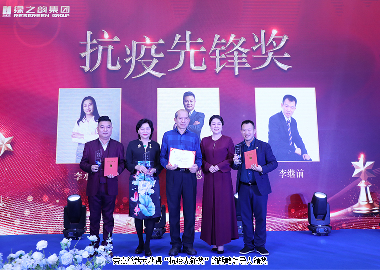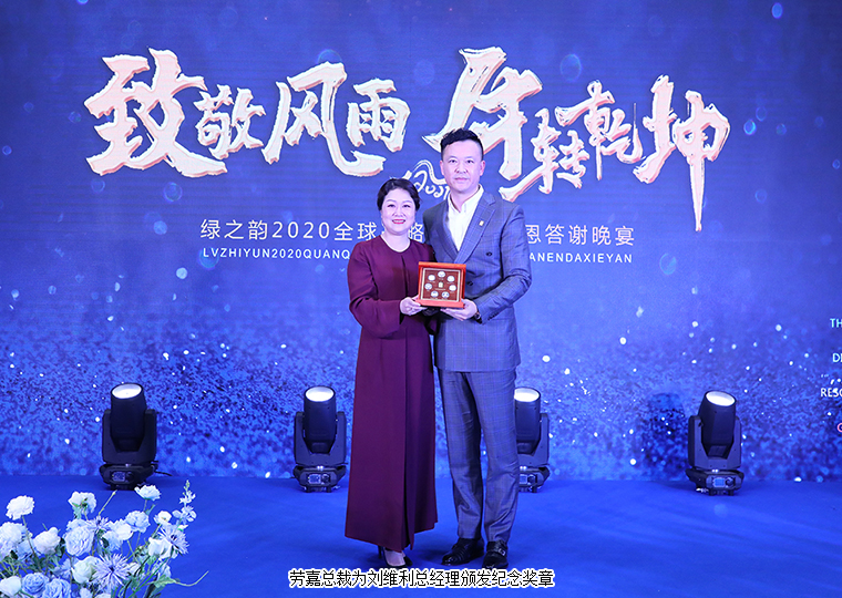 短短几分钟的视频回顾,将绿之韵人过去一年胼手胝足的前行轨迹清晰地呈现。2020年,在这场席卷全球的疫情大考中,安博官网上下齐心协力,在胡国安董事长、劳嘉总裁以及市场战略领导人的带领下,全体员工、全国各地绿之韵伙伴的踊跃奉献爱心,用力所能及的力量支援抗击疫情,交出了一份满意的答卷。今天的晚宴现场,绿之韵公益基金会向其中表现最突出的李水莲·刘时达伉俪、李继前、费毓恩授予“抗疫先锋”称号。