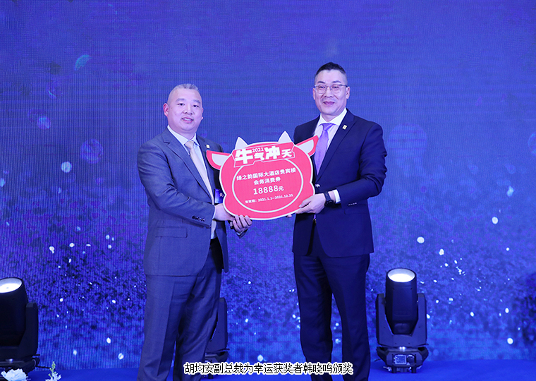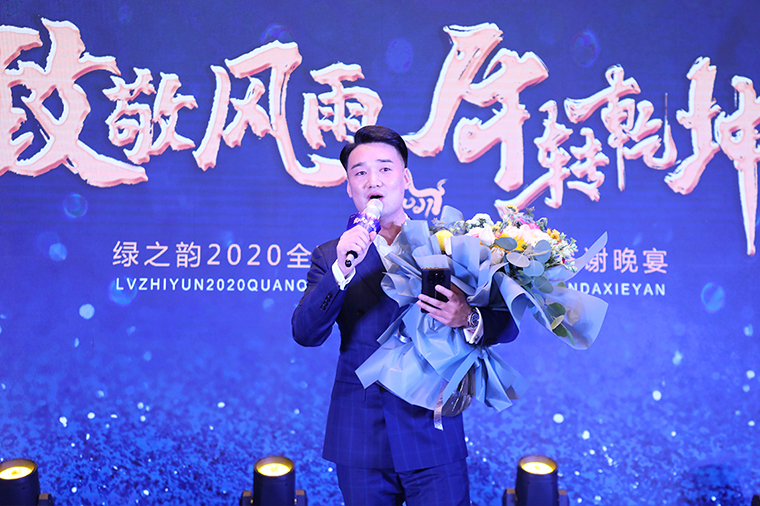 在经过一轮精彩的互动抽奖游戏后,胡均安副总裁上台为“幸运大礼包”获奖者韩晓鸣颁奖。他表示,很高兴今天代表集团董事会为大家送上祝福和福利。2021年,集团在推进原有业务板块稳定发展的同时,也将积极布局市场全面发展战略。集团所有的服务团队,产品、市场、品牌、客服等,都会在“稳步发展、保障服务、规划未来”的十二字方针下,为各系统、各市场板块做好服务与支持工作,为实现我们的市场目标全面保驾护航。新的一年,祝各位绿之韵大咖牛年大吉、市场红火,共创绿之韵事业新的辉煌。