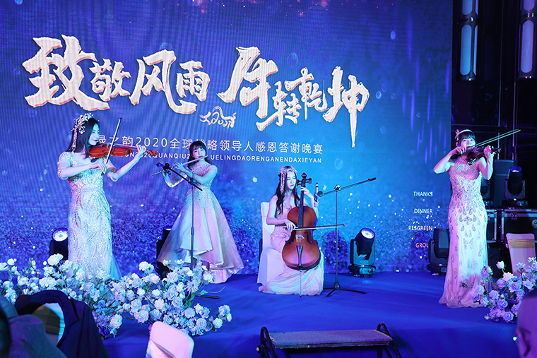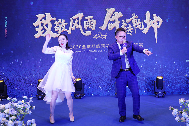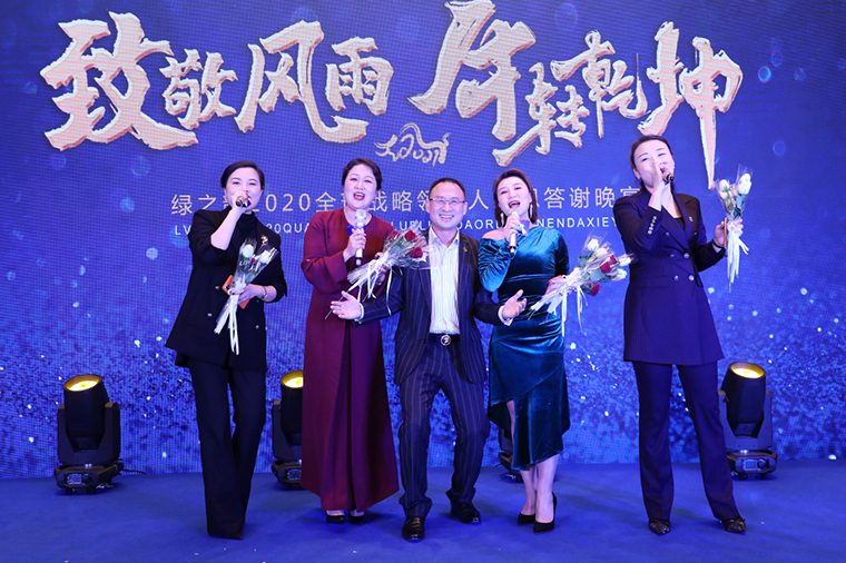 晚宴以“致敬风雨 牛转乾坤”为主题,安博官网总裁助理蒋文担任主持。晚宴伊始,安博官网董事、总裁劳嘉致辞。她首先代表集团公司对各位嘉宾、各位市场优秀领导人的到来致以热烈的欢迎和诚挚的新春问候!在致辞中,她向大家解读了“重启”“蜕变”和“相信”三个“关键词”。一是重启,过去的一年因为疫情,我们一度按下“暂停键”,新的一年我们一定要按下“重启键”,重启思维、重启战略、重启战术和重启市场。二是蜕变,崭新的2021将是我们准确识变、主动求变、以变制变的一年。三是相信,2020年集团公司度过了最为艰难的一年,但我们要相信在度过这些艰难险阻之后,我们终将迎来曙光。2020年我们相聚的日子太少,希望通过今天的晚宴,各位优秀的绿之韵全球战略领导人能携手同心、抱团发展、追求共赢,为我们共同的梦想去开启我们的2021。