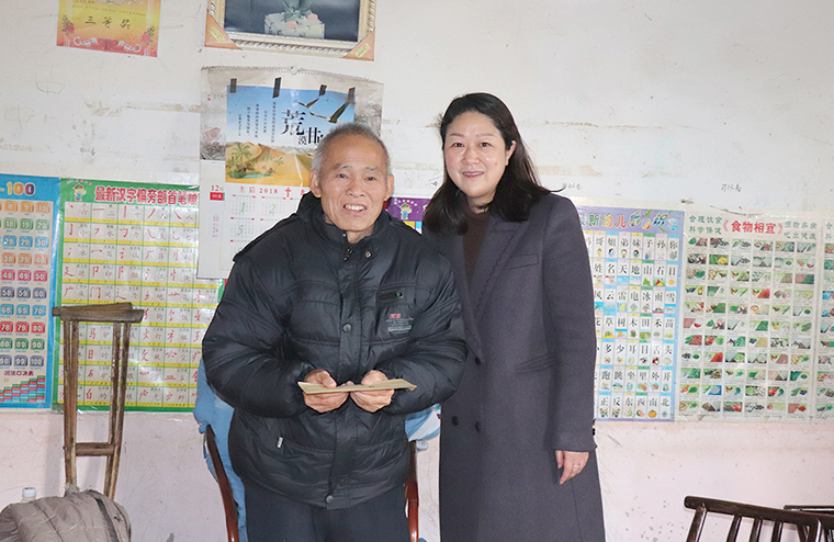 美丽的边洲村村容整洁、楼房林立,史习忠老爷爷家的红砖房就额外打眼。史爷爷已经近70岁高龄,身体不好,做过手术之后只能拄着拐杖行动,小孙女患有先天性心脏病,一家人的生活都靠儿子在外打零工维持。慰问组的来访,让史爷爷特别开心,不断地感谢党和政府以及绿之韵企业送来的温暖,张罗着要老伴拿出自家炸的红薯片招待客人。劳嘉理事长问候老人家的身体情况,亲切叮嘱:史爷爷一定要吃好穿暖,安心过一个温暖的好年!