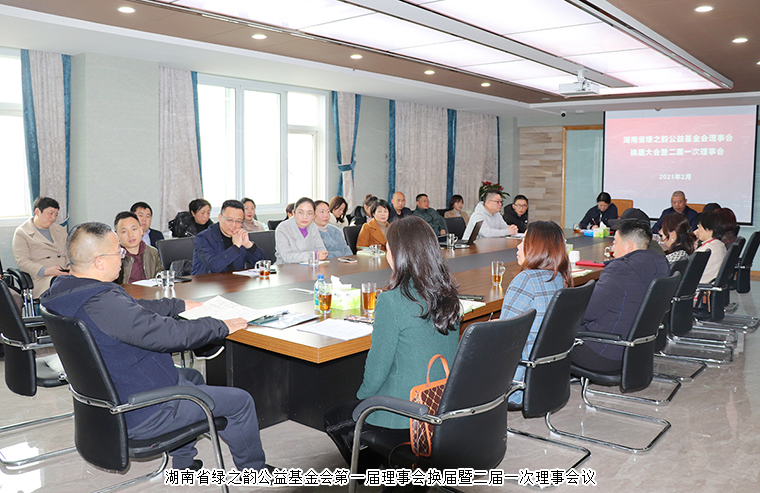 2021年2月27日,湖南省绿之韵公益基金会第一届理事会换届暨第二届理事会第一次会议在长沙举行。会议通过了第一届理事会工作报告和财务情况报告,并选举产生了基金会第二届理事会。