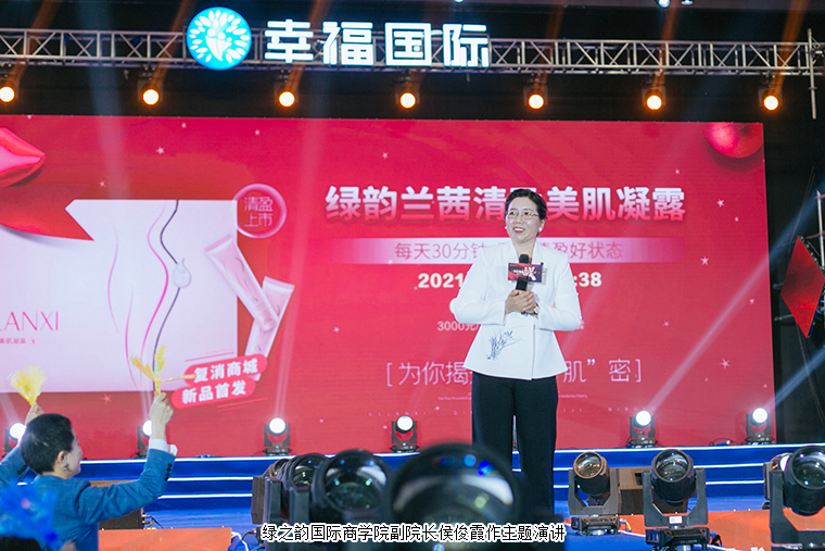 大梦起航,热血飞扬,我们用青春铸就梦想,用激情燃烧岁月,用奋斗守望未来,我们为幸福而战。一曲激情澎湃的开场舞蹈拉开了本次大会的序幕。绿之韵国际商学院副院长、特聘教授、绿之韵专家委员会专家委员侯俊霞带来《为使命而战》主题课程分享。她从生产价值、使用价值、科研价值和品牌价值四个维度向全场的家人们分享了绿之韵创立至今十八年始终秉承“运用现代科技将中华五千年养生文化及中医理论发扬光大,为解决人类亚健康服务”的企业使命和“以产品为导向”的产品理念。会上,在全场绿之韵家人雷鸣般的掌声与欢呼声中,新品绿韵兰茜清盈美肌凝露震撼发布,掀起了本次大会的第一个高潮。