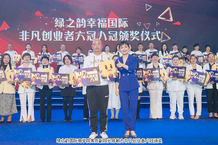 同心石成玉,协力土变金,开创未来,需要一种克难攻坚的精神,更需要一种团结协作的合力,携手并肩同舟共济,在凝聚和奉献中闪耀团结之光,彰显力量之美。他们是绿之韵前进的开拓者、梦想的成就者,为绿之韵的发展贡献不凡力量。绿之韵国际商学院执行院长黎芋成为非凡创业者九冠颁奖。获奖代表陈燕芳分享获奖感言。