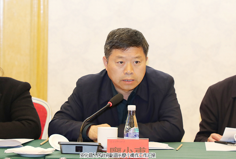 安化县人民政府副县长廖小甫作脱贫攻坚和乡村振兴工作汇报。近年来,安化县委县政府认真贯彻落实中央、省、市决策部署,切实担负起了脱贫攻坚的历史使命。2020年,14.86万农村贫困人口实现稳定脱贫,脱贫攻坚取得历史性的伟大成效。目前,安化县仍存在抵抗返贫风险能力弱、相对贫困尚未消除、产业基础薄弱、乡村振兴面临瓶颈等问题。希望各级领导在安化县推动乡村振兴的过程中给予更多关心和支持,各爱心企业能加大投资力度来安化投资兴业,希望各位专家能给予更多技术指导,共同助推安化县乡村振兴。