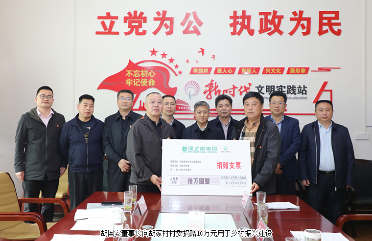 月是故乡明,话是乡音亲。家乡永远是最具安全感的创业热土。建设家乡、造福家乡永远是在外经商的安化籍企业家的事业理想和追求。近年来,胡国安董事长始终对家乡的发展高度关注,对家乡的建设大力支持,多次回到家乡安化修路建桥、为当地学校捐资助学、捐建校车,积极通过实施“输血+造血”式和产业投资扶贫支援家乡建设,回报桑梓。在基础设施建设方面,2015年,绿之韵公益基金会积极响应省委统战部精准扶贫号召,捐资30万帮扶安化县江南镇黄石片区村组建设水、电、道路和学校等基础设施;2018年捐资145万元支援安化县胡家村、茅坪村、驿头铺村基础设施建设;2019年捐资20万元在安化县神湾村开展美丽乡村建设。在人才培养上,2019年绿之韵在安化县烟溪镇捐资成立“关心下一代基金”,关注家乡孩子们的学习和成长。此次回乡,绿之韵不仅向胡家村村委捐赠10万元现金支票用于乡村振兴建设。2021年,绿之韵将再捐20万在安化筹建致公·绿之韵班,以更好的培养品学兼优的贫困学生,为家乡乡村振兴储备更多优质人才。截止目前,胡国安董事长支援家乡的扶贫足迹遍布安化高明乡、古楼乡、冷市镇、江南镇、烟溪镇等地,项目涉及赈灾济困、兴教助学、孤残救助、医疗卫生、修路饮水、养老医疗、中药材种植加工等,累计捐赠款物500多万元。