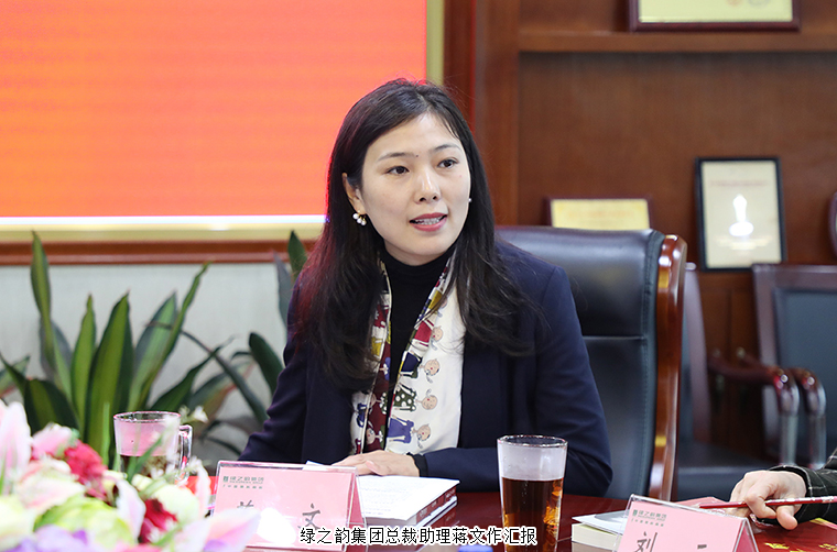 在绿之韵国际会议中心多功能展厅,胡均安副总裁就企业基本情况、知识产权管理体系、产品研发、非公党建和公益慈善等方面的工作情况向调研组一行作了汇报。绿之韵坚持“以产品为导向”的发展以及狠抓党建、产业富民、回馈社会的良好企业形象得到了调研组一行的肯定。