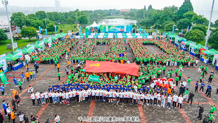 3000多名“绿跑侠”在橘子洲高喷广场整齐排列出数字“100”的方阵和党旗方阵,以红歌快闪的形式共同唱响《歌唱祖国》,用嘹亮的歌声向建党100周年献上最美好的告白和祝福!