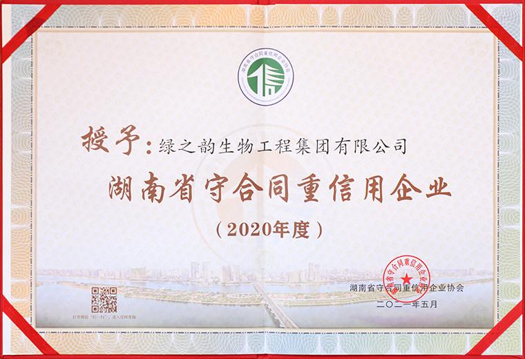 “湖南省守合同重信用”企业公示活动,旨在推进湖南省社会信用体系建设,引导市场主体建立科学、合理的合同与信用管理机制,服务全省经济发展,表彰企业在信用管理体系、合同制度管理、合约履行能力以及企业社会信誉等方面所取得的成绩。绿之韵连续多年来被评为湖南省“守合同重信用”企业是政府部门、社会各界对公司信用价值理念和诚信服务实践的充分肯定。