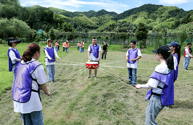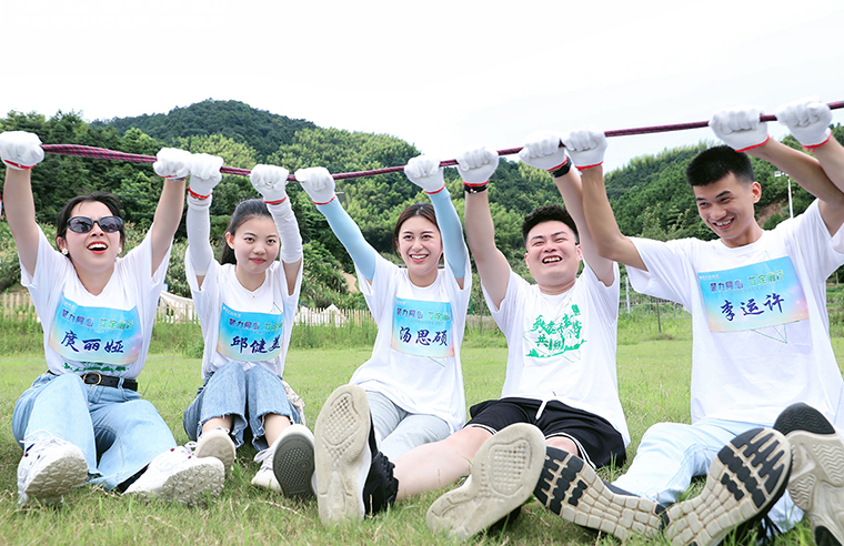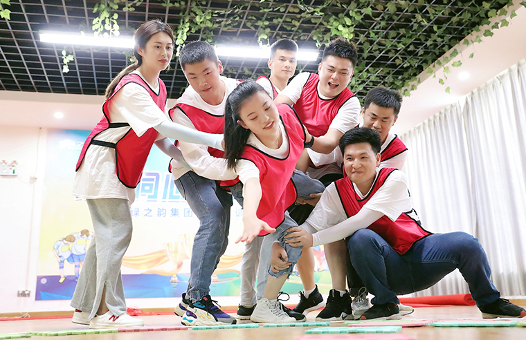 在接下来的体验式拓展培训课程中,学员们共分为三组,分别为“人和队”、“天韵队”和“精英队”,并选派出小组组长。三组团队都特别准备了团队口号和队形展示。紧接着,各位学员精神抖擞、士气高昂、摩拳擦掌,在素质拓展活动中积极展现团队风采,先后进行了“鼓动人心”、“流浪地球”、“极速传真”、“动力绳圈”等多项团队协作项目,深刻地体会到了团结协作、尊重规矩法则和挑战自我极限的重要性,极大增强了团队凝聚力和学员们对绿之韵大家庭的归属感和向心力。